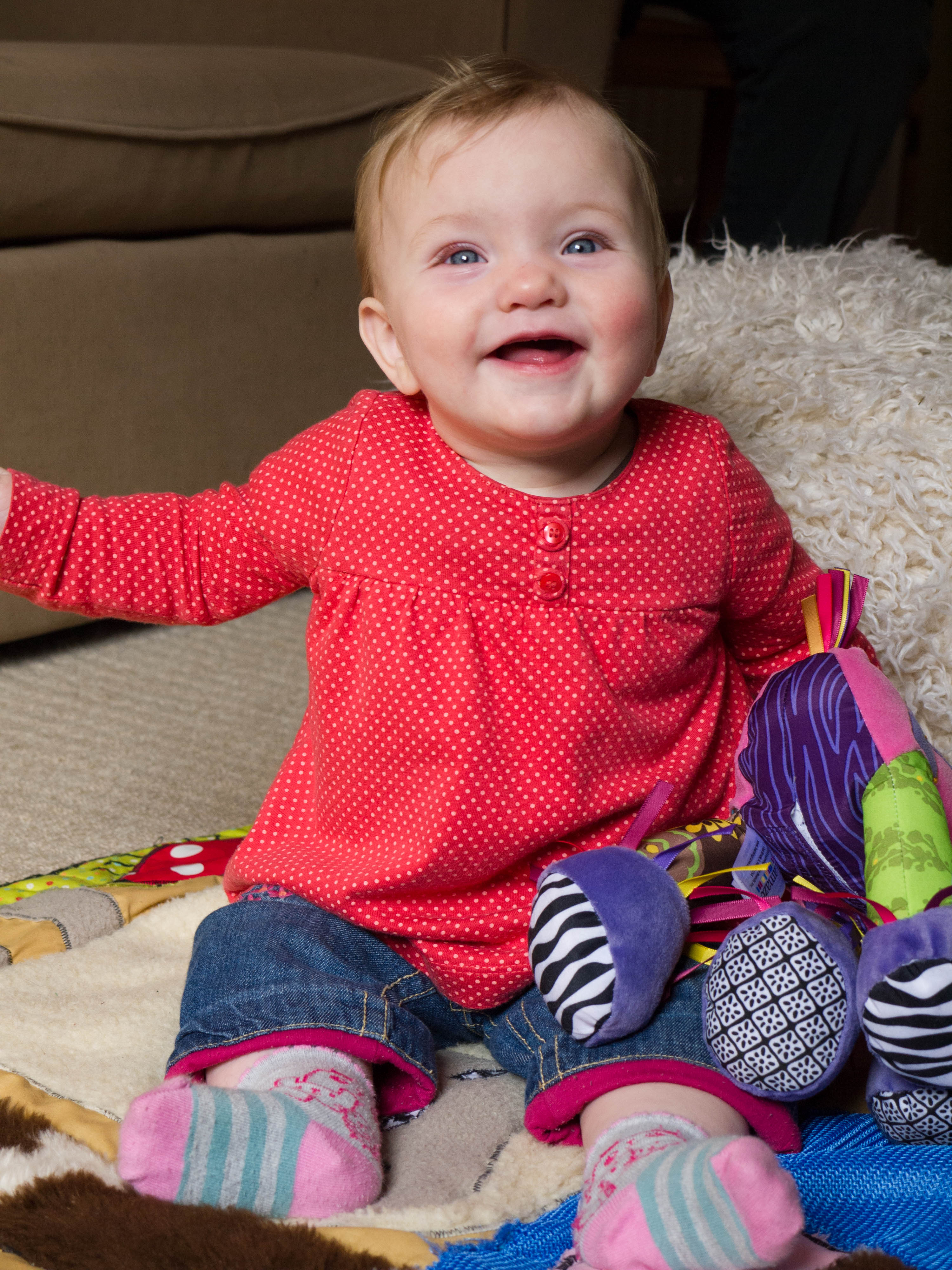 This new found skill has opened up exciting new interactions with us, her toys and her surroundings – which has been fascinating to watch.