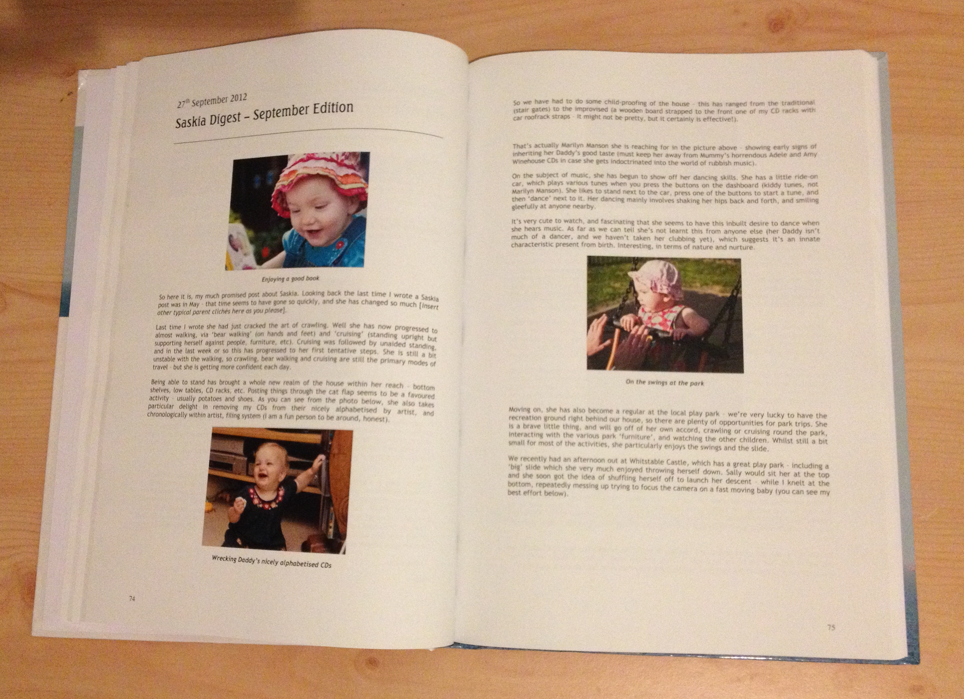 Above all else, the reason for my happiness is Saskia. She is such a bundle of absolute joy, and with her around there simply isn’t space or time to get down and feel miserable. I aim to be a happy and playful parent for her sake, and she makes that job so easy! Here’s a fabulous picture that for me sums up the fun and adventure that life with Saskia has been this year…